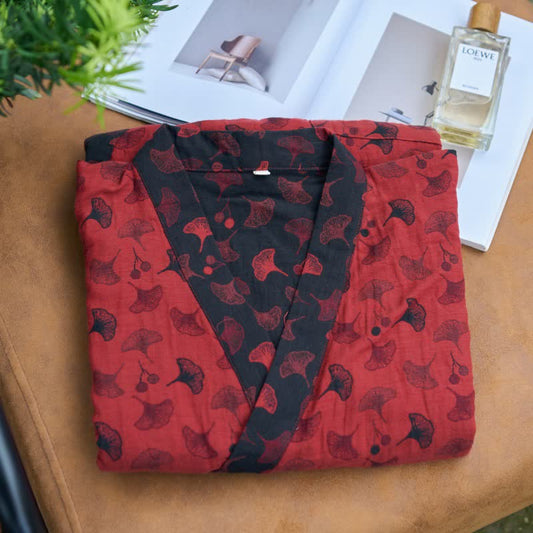 Vestaglia giapponese in garza di cotone Ginkgo Biloba