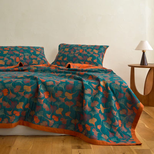 Copriletto in garza di cotone naturale Ginkgo Biloba